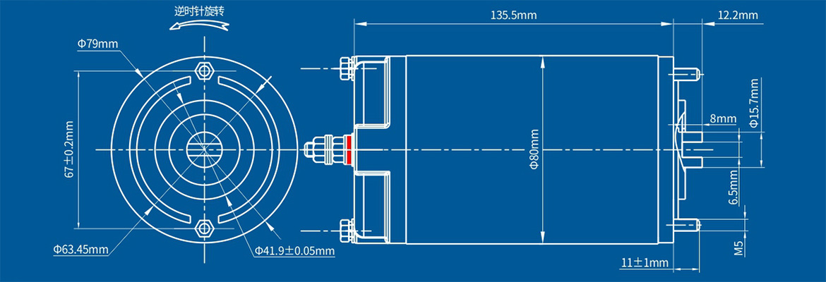 | 电机尺寸 Dimensions(mm) | Φ80x135.5 | 额定电压 Rated Voltage(V) | 48 | 额定电流 Rated Current(A) | 24 | |